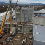 Für das Hochregal-Lager der Firma Lomapharm in Emmerthal wurden die letzten Stahlbetonfertigteile geliefert und montiert. Anschließend wird nun die BRESPA Decke verlegt, wobei es sich um eine Spannbetondecke handelt, und die Fassade geschlossen.mehr...